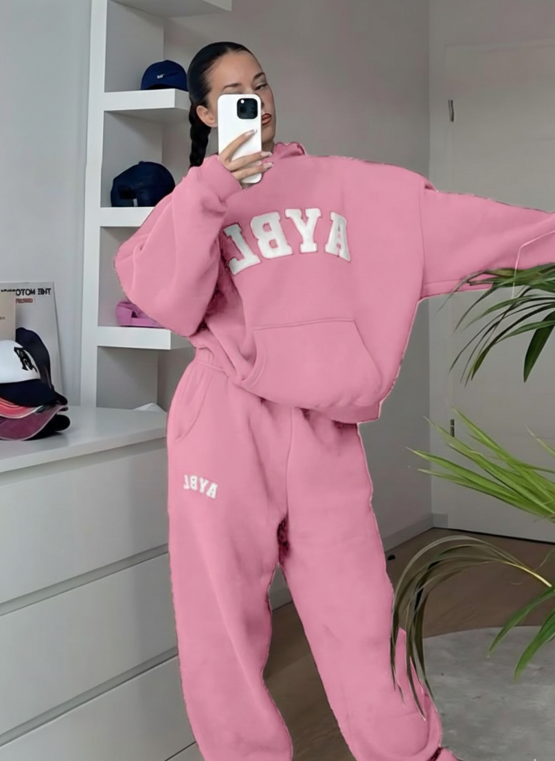 طقم ترنج حريمي خامة ميلتون تقيلة وناعمة بستايل شبابي مريح، مناسب للبيت والخروجات واللوك الرياضي. تصميم عملي به هودي بجيب أمامي وبنطلون مريح يعطي حرية حركة وشكل عصري.