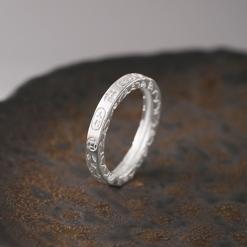 999 Pure Silver Lucky Auspicious Ring For Women, New Chinese Style Design, Attract Wealth & Blessing, Good Luck Open Ring