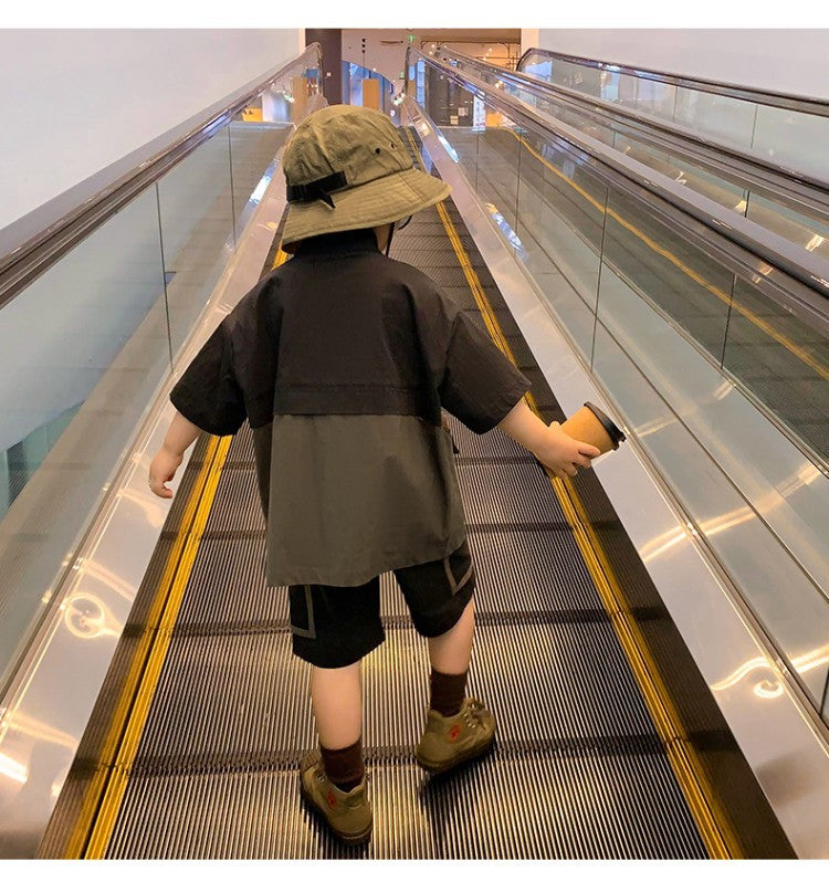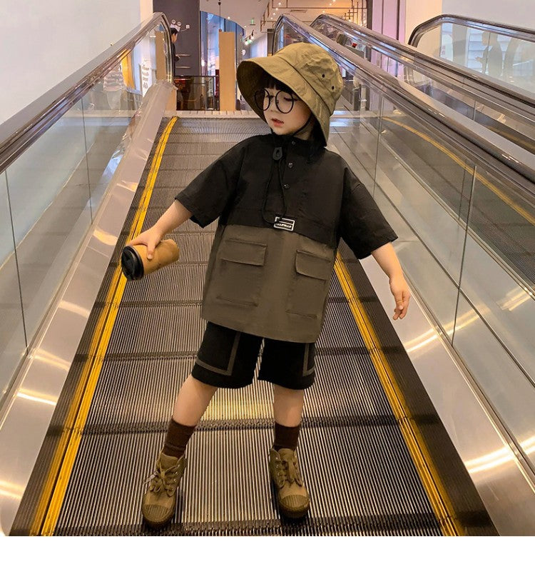 Children's Clothing Boys Cotton And Linen Suit Summer New Foreign Style Summer Baby Short-sleeved Net Red Fashionable Tide Clothes