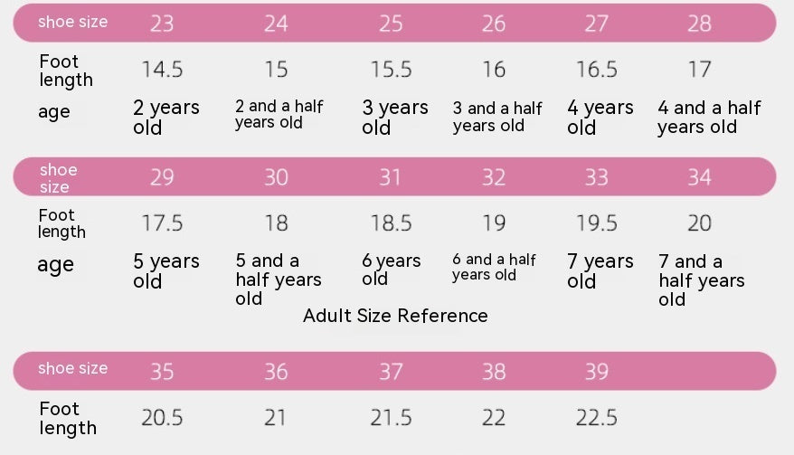 المقاس: 23، 24، 25، 26، 27، 28، 29، 30، 31، 32، 33، 34، 35، 36، 37، 38، 39