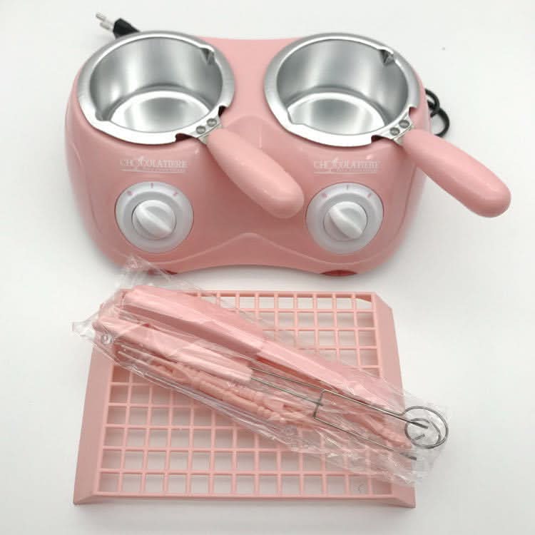 How to use: Chocolate melting pot comes with an English manual (if you mind if you take it carefully), it is easy to use. You only need to put the chocolate raw materials into the heated aluminum pot (the granular raw materials are directly placed in the pot, and the block raw materials need to be sliced before putting Into the pot), first adjust the heating switch to the second gear (about 70-80 degrees) until the chocolate ingredients are completely melted, and then adjust the heating switch to the first gear (about 40-50 degrees), which can speed up the melting of the chocolate without causing The quality of chocolate raw materials caused by long-time heating at second gear high temperature