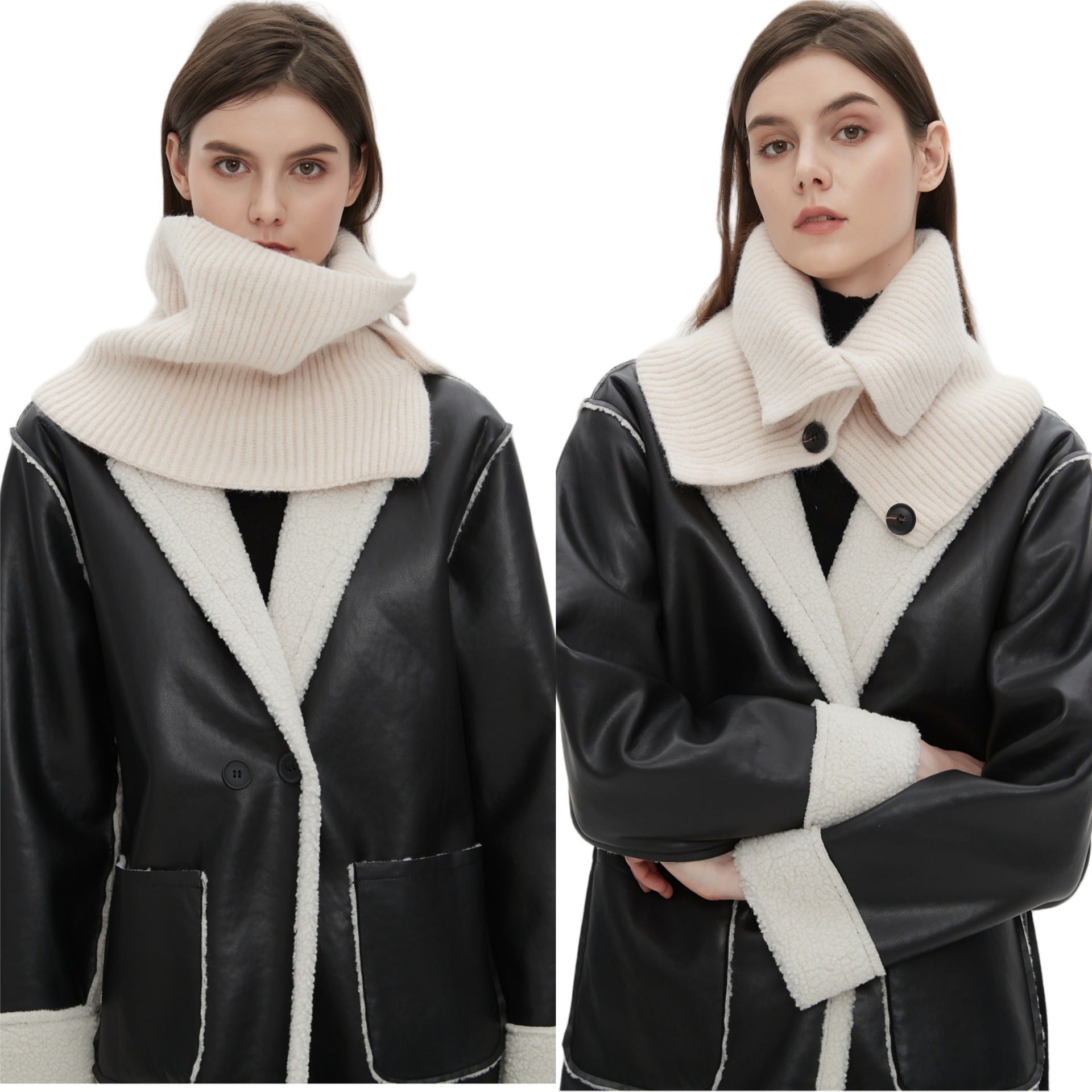 European And American Winter Korean Style Wool Solid Color Clip Flower Shaped Button Knitted Scarf