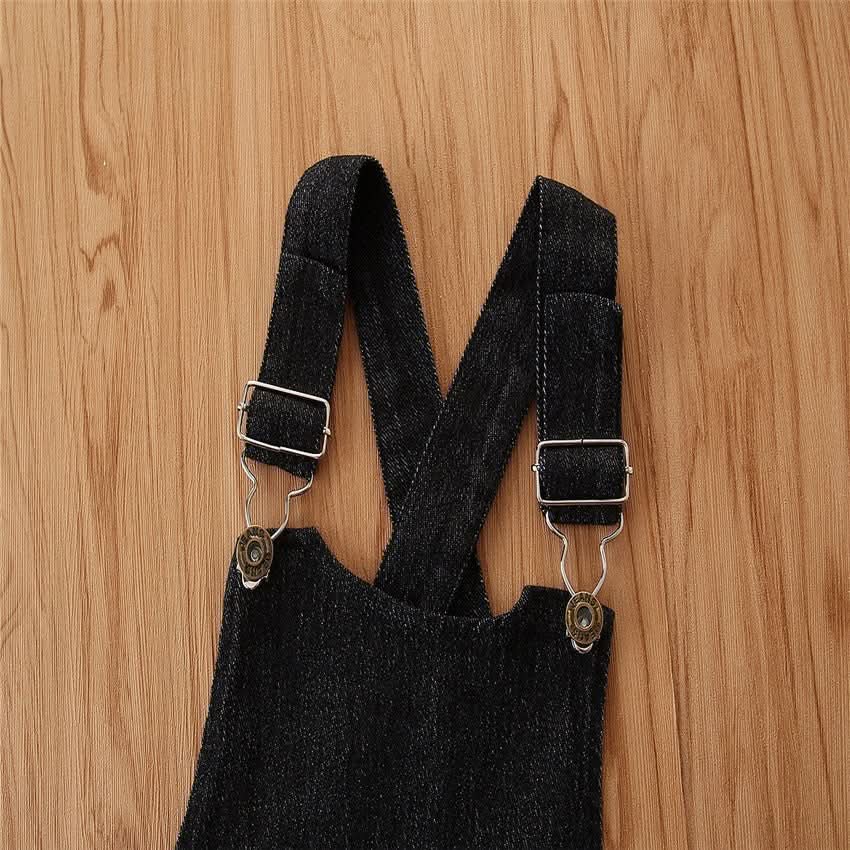 Girls' Short - sleeved Suit Puff Sleeve Black T-shirt Denim Suspender Skirt Fashionable - Eshtree