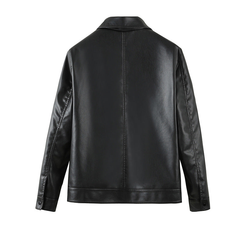 Men's Simple Casual Solid Color Windproof Handsome PU Leather Jacket Top