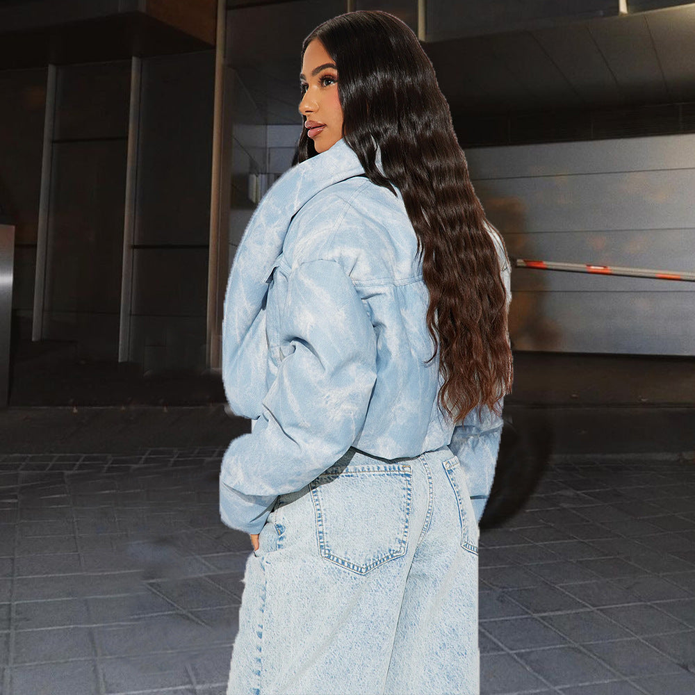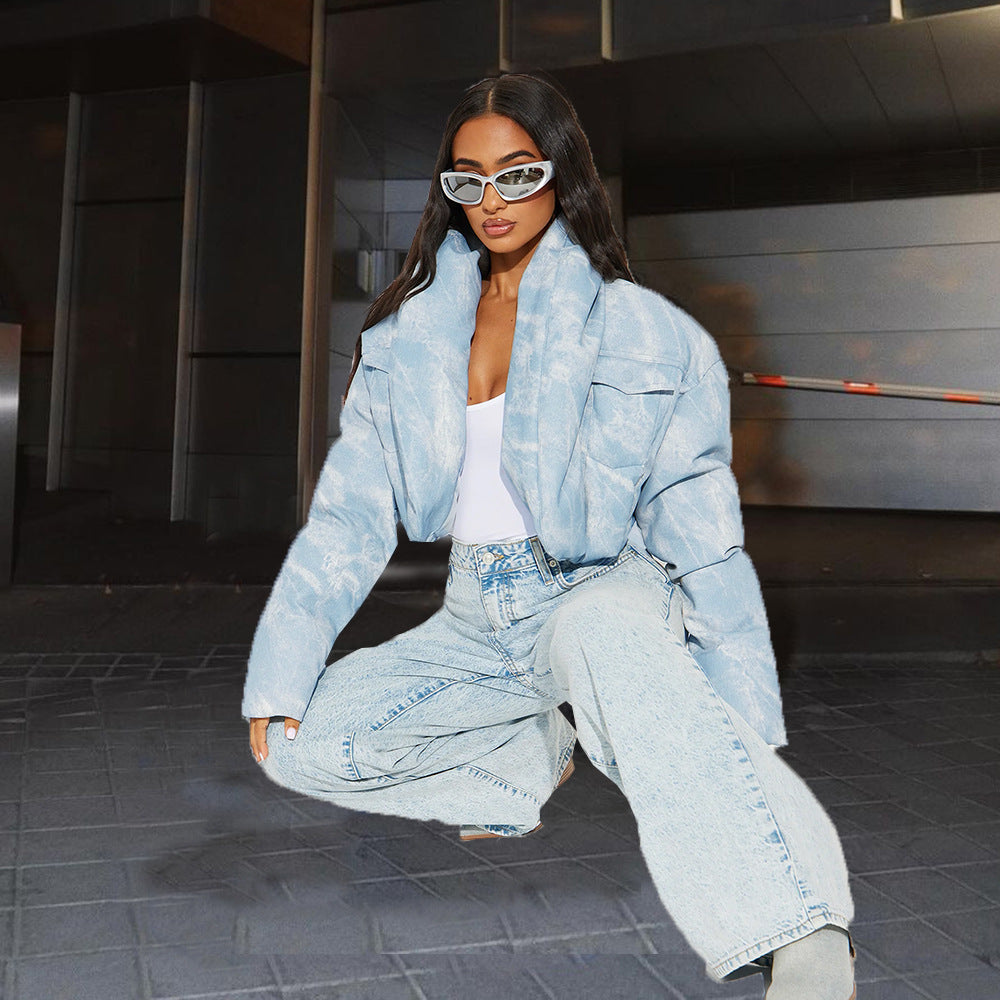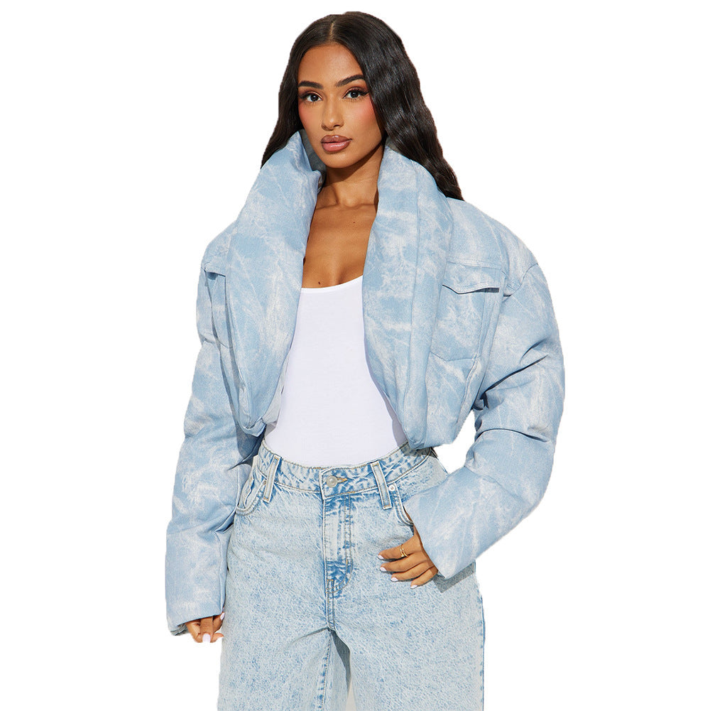 Quilted Scarf Stand Collar Pocket Long Sleeve Blooming Color Matching Short Cotton-padded Coat Coat For Women
