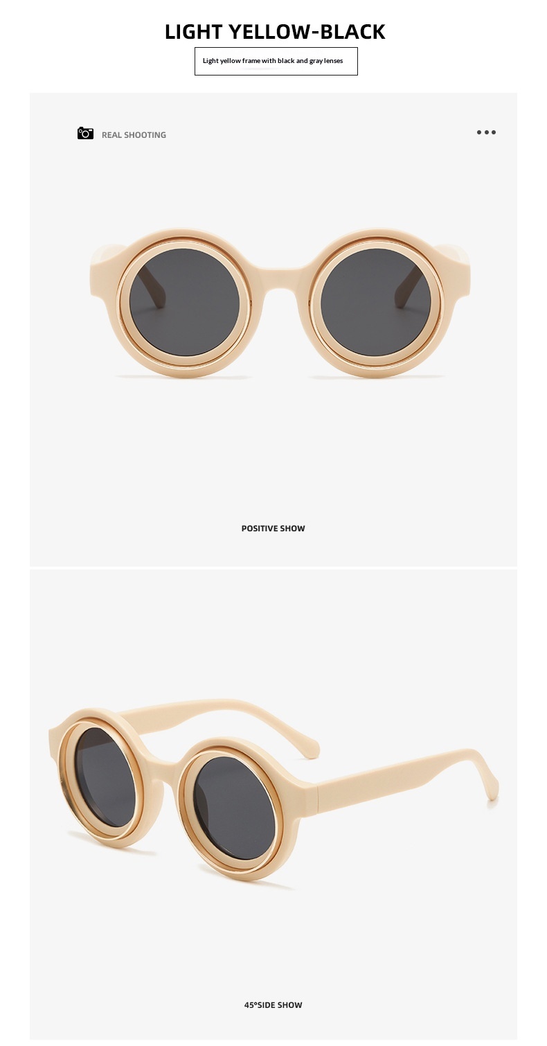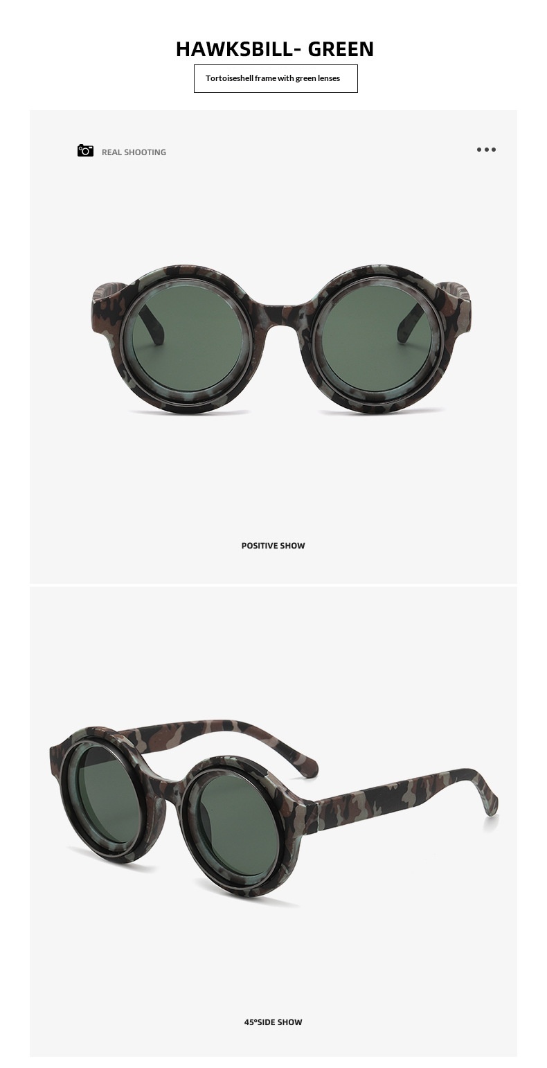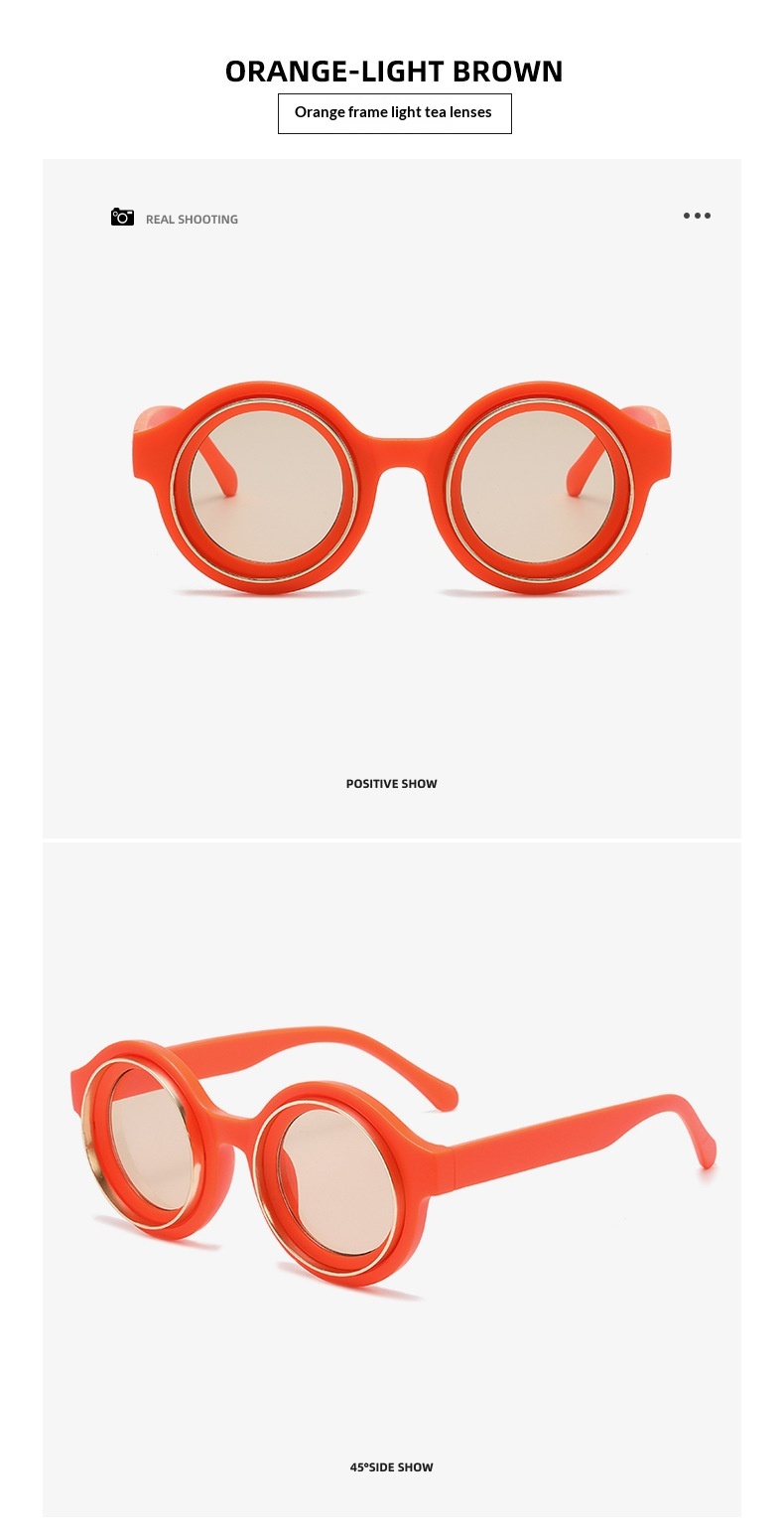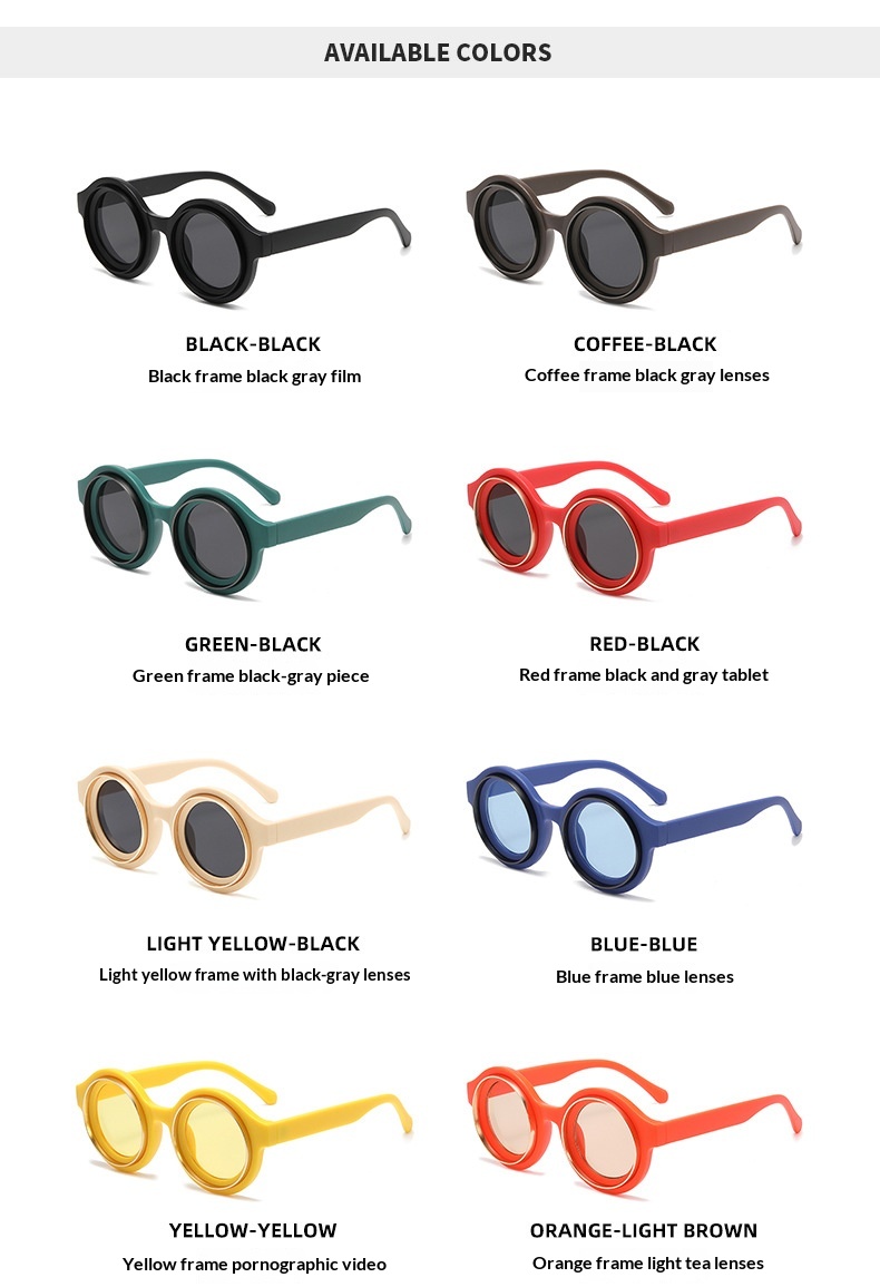 Colors: Sand Color with Black Frame and Black-Gray Lenses, Coffee-Colored Frame with Black-Gray Lenses, Green Frame with Black-Gray Lenses, Red Frame with Black-Gray Lenses, Beige Frame with Black-Gray Lenses, Tortoiseshell Patterned Frame with Brown Lenses, Blue Frame with Blue Lenses, Yellow Frame with Yellow Lenses, Orange Frame with Champagne-Colored Lenses, Camouflage Frame with Green Lenses