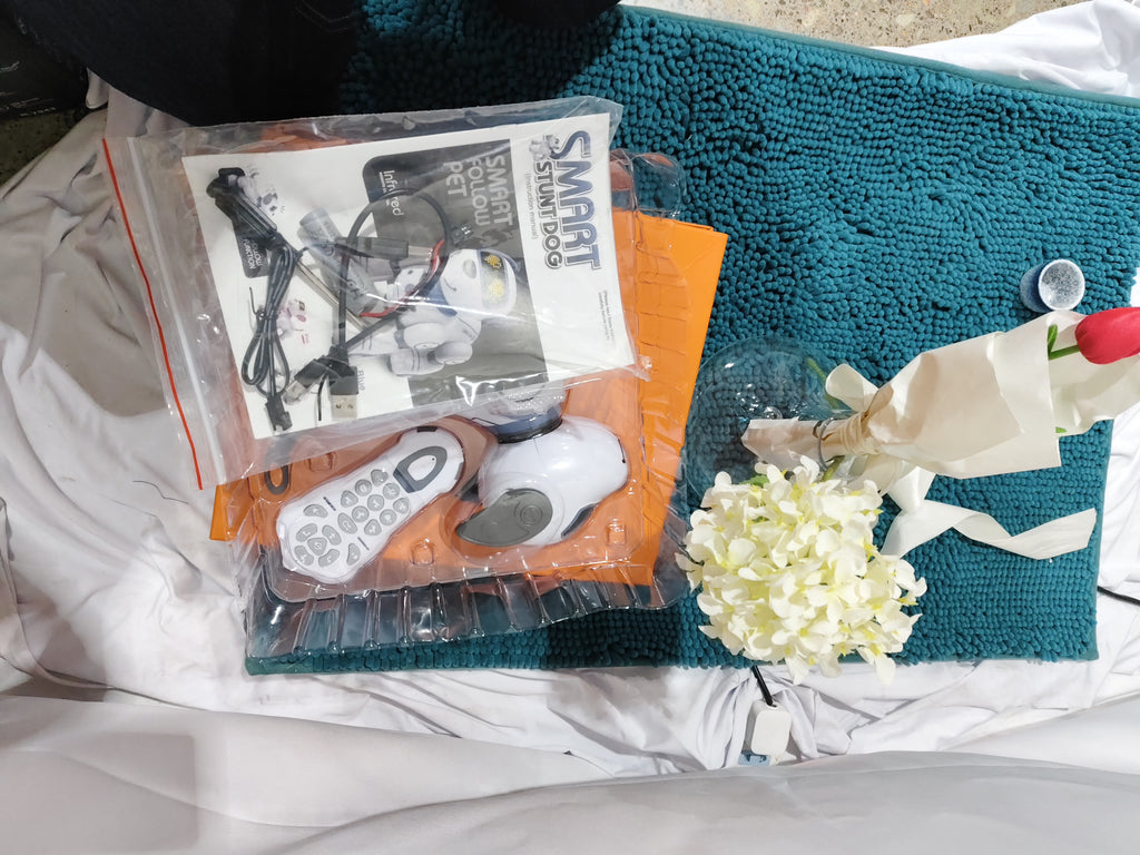 Robot dog*1+remote control*1+manual*1+3.7VUSB charging cable*1+screwdriver*1