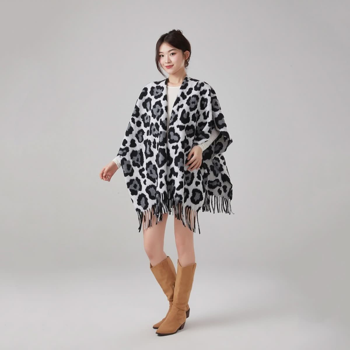 Thick Warm Vintage Leopard Print Tassel Shawl - Eshtree