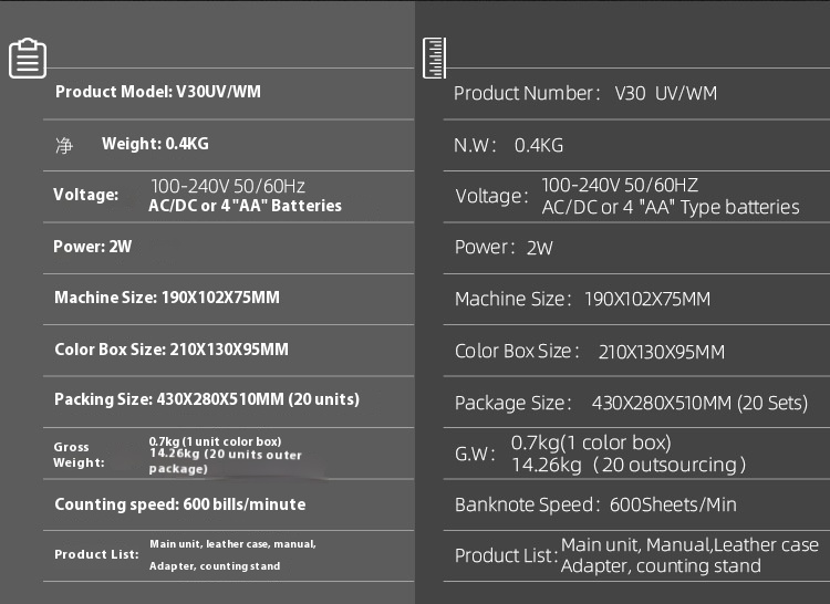 Specifications: V31 with purple light money detector American plug, V31 with purple light money detector Europe plug, V31 with purple light money detector British
