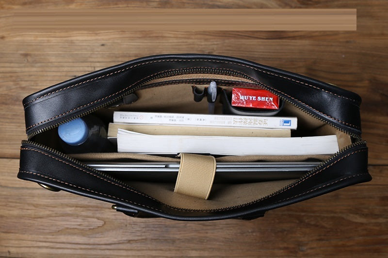حقيبة يد رجالية جلدية عتيقة الطراز مصنوعة يدوياً من جلد كريزي هورس