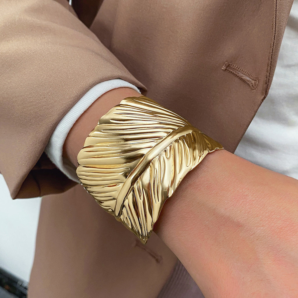 Wide Leaf Personalized Opening Bracelet Exaggerated