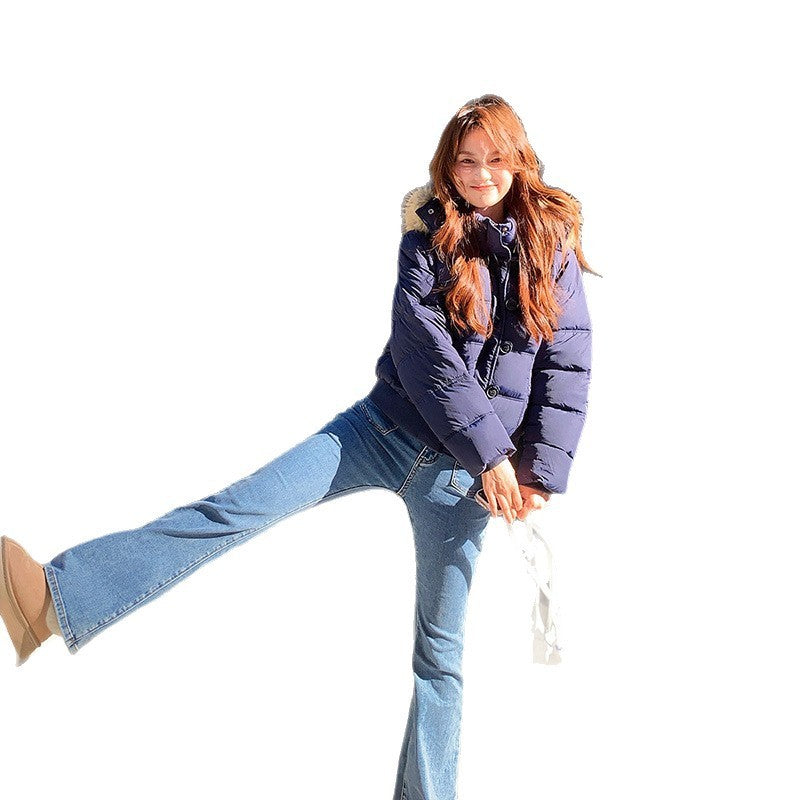 Winter Down Cotton Jacket Women's Short Big Fur Collar Hooded