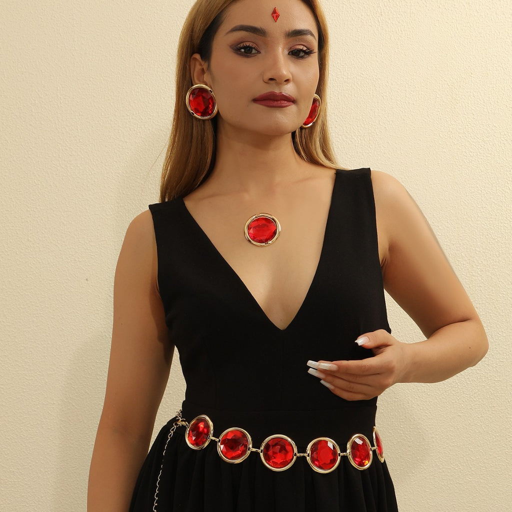 Women's Mirror Casual Decorative Corset Resin Crystal Ruby