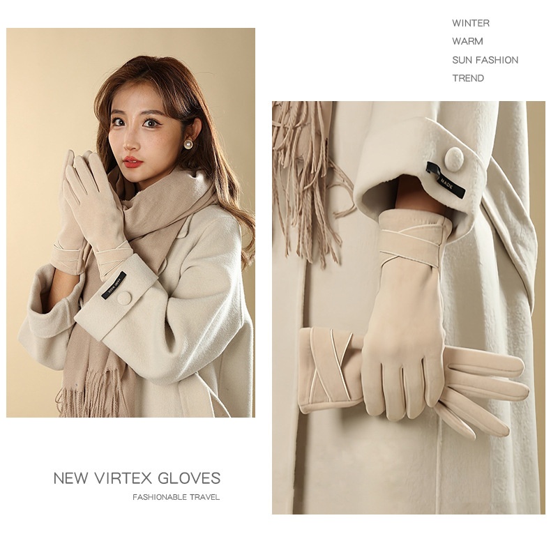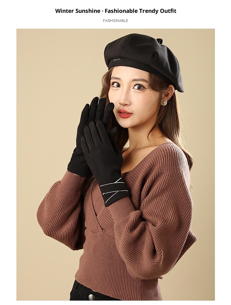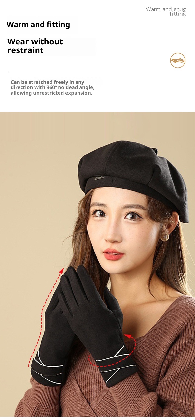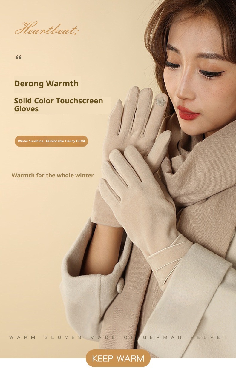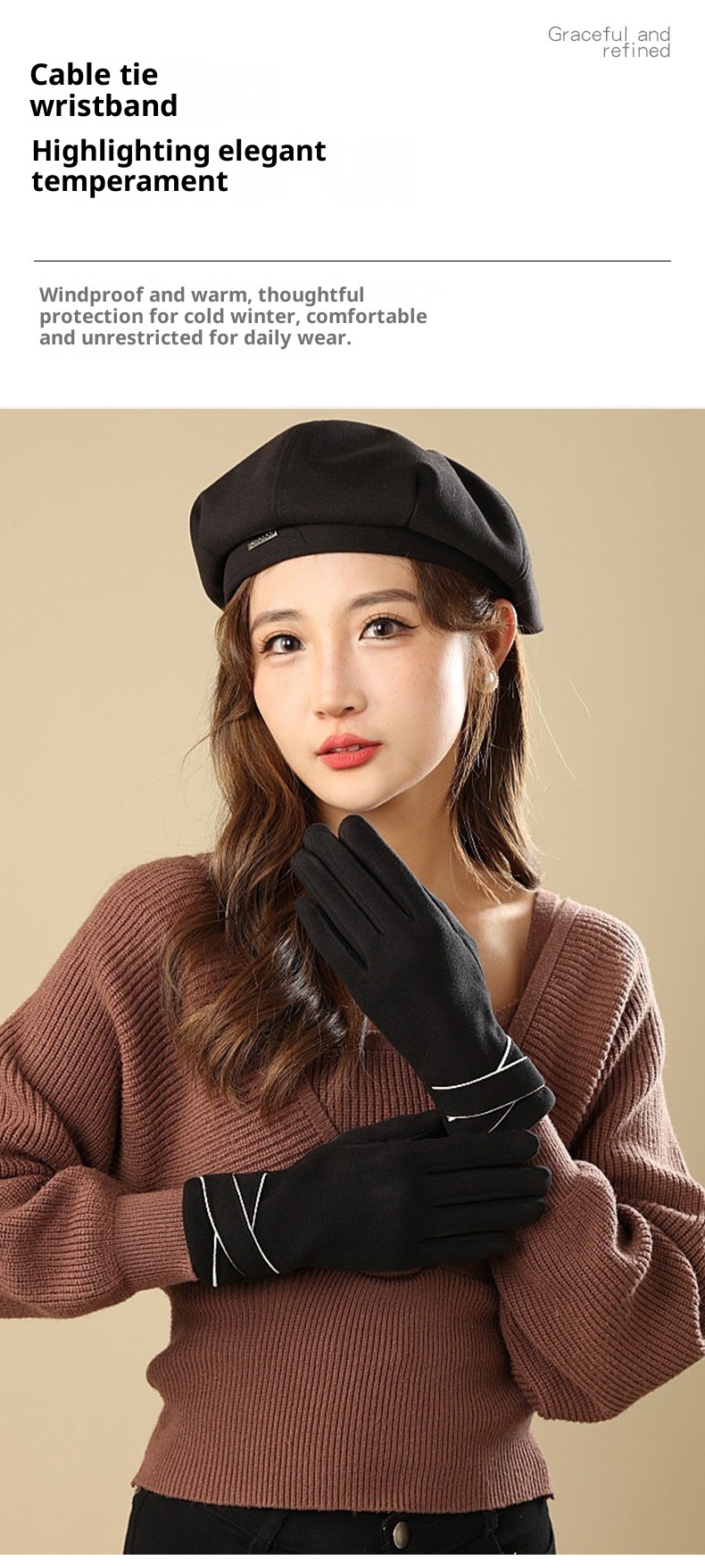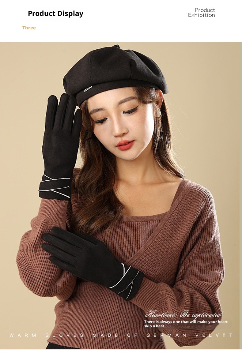 Women's Outdoor Warm Velvet Padded Thickened Cycling And Driving Versatile Simple Touch Screen Warm Gloves