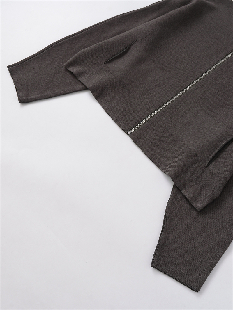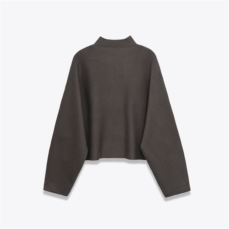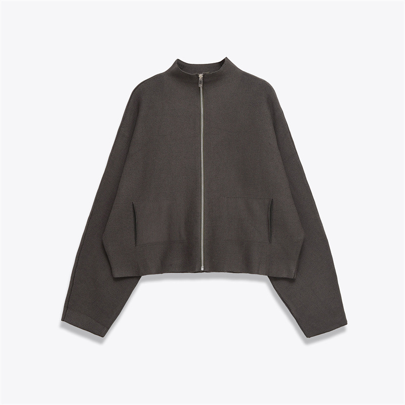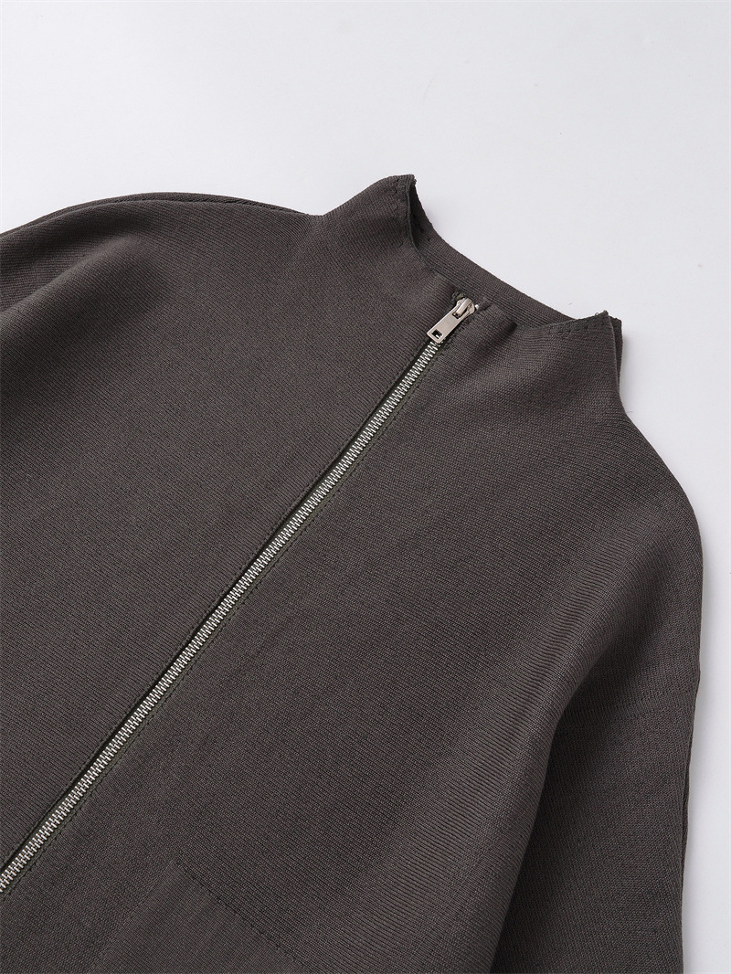 Women's Stand Collar Zipper Long Sleeve Knitted Coat