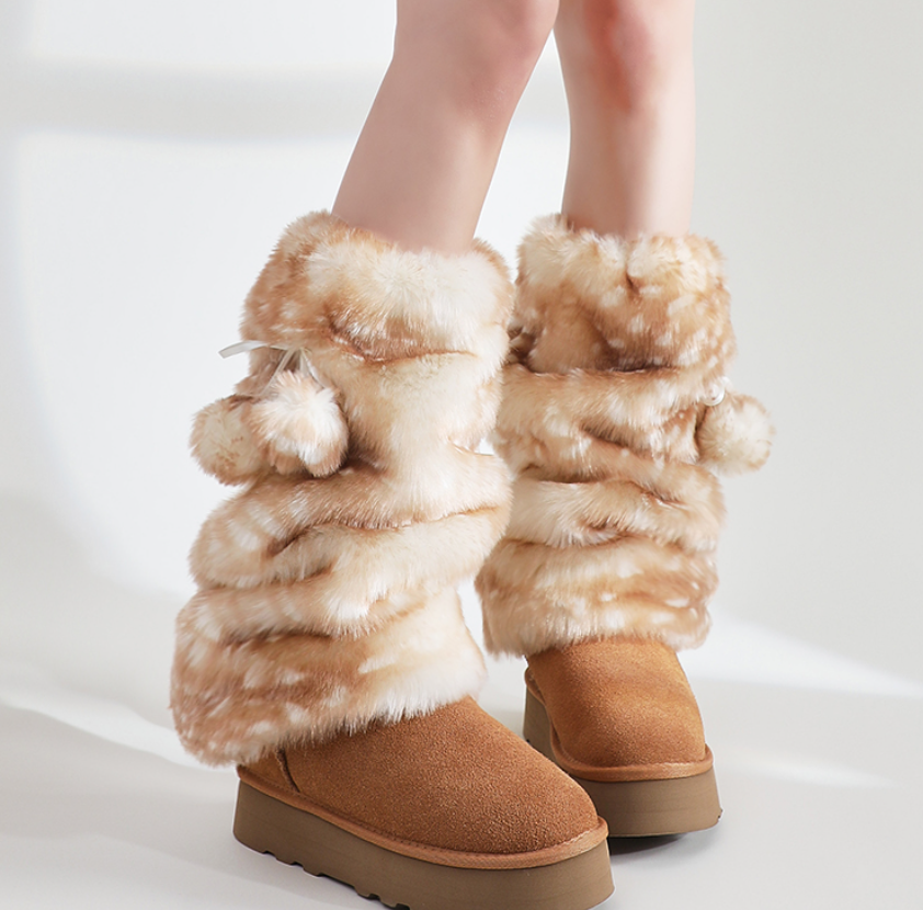 Women's Subculture Fur Bunching Socks Jk Fur Ball